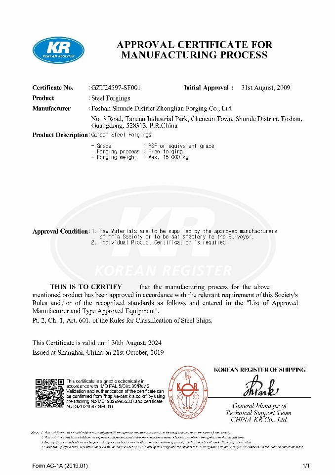 KR工廠認(rèn)可證書