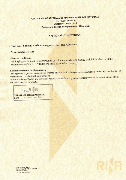 RINA工廠認(rèn)可證書