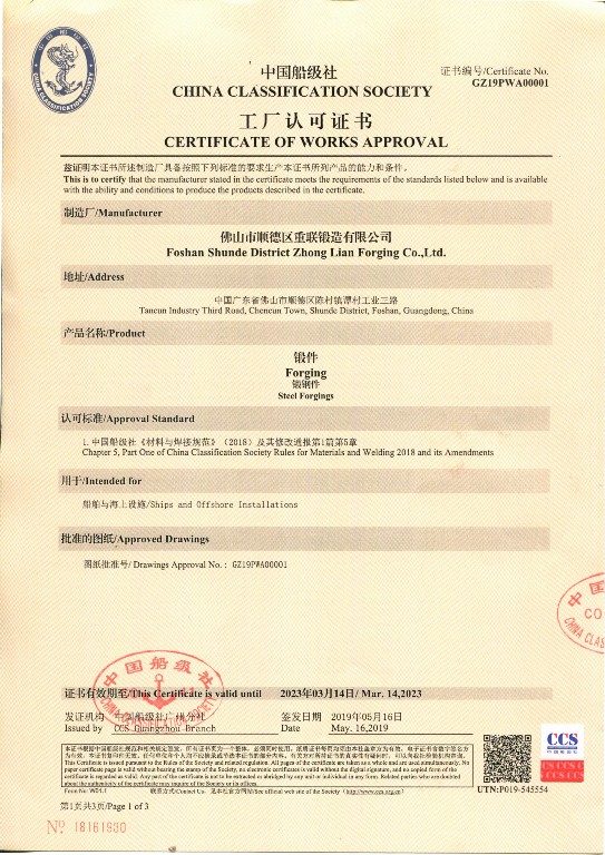 CCS工廠認(rèn)證證書