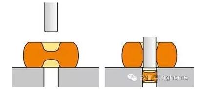 沖孔時(shí)內(nèi)孔圓角處的裂紋是由于此處溫度降低較多,塑性較低,加之沖子一般都有錐度,當(dāng)沖子往下運(yùn)動時(shí),此處便被脹裂。因此,沖子的錐度不宜過大,當(dāng)沖低塑性材料時(shí),如Cr12型鋼,不僅要求沖子錐度較小,而且要經(jīng)過多次加熱逐步?jīng)_成。